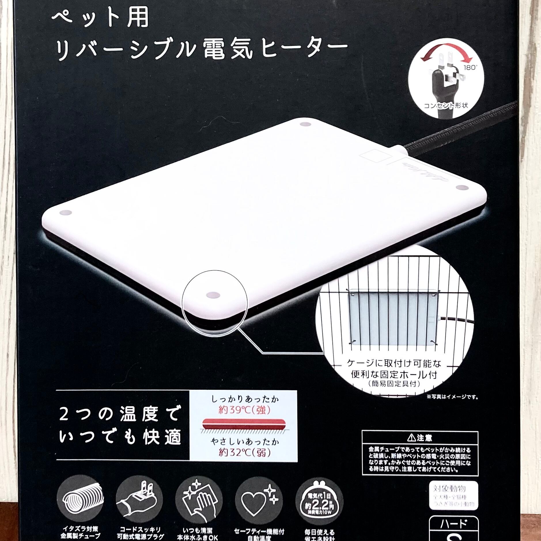 壁とケージのあいだに立てるように挟んでセットしてあげると、寒ければ近づいて、暑ければ離れられるので安心して使えますね♪