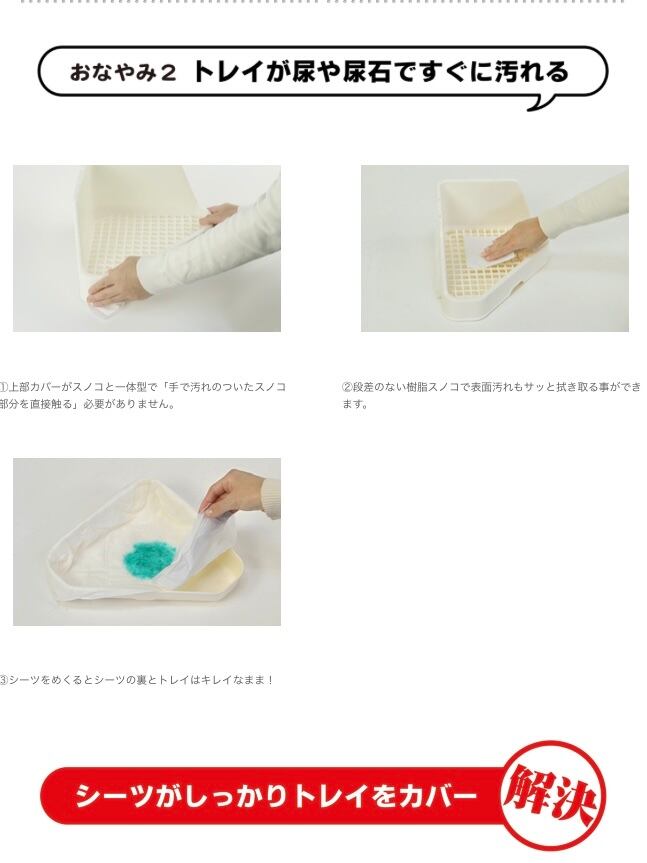 シーツで汚れをまとめてポイッ!きれいが続くうさぎの三角トイレ