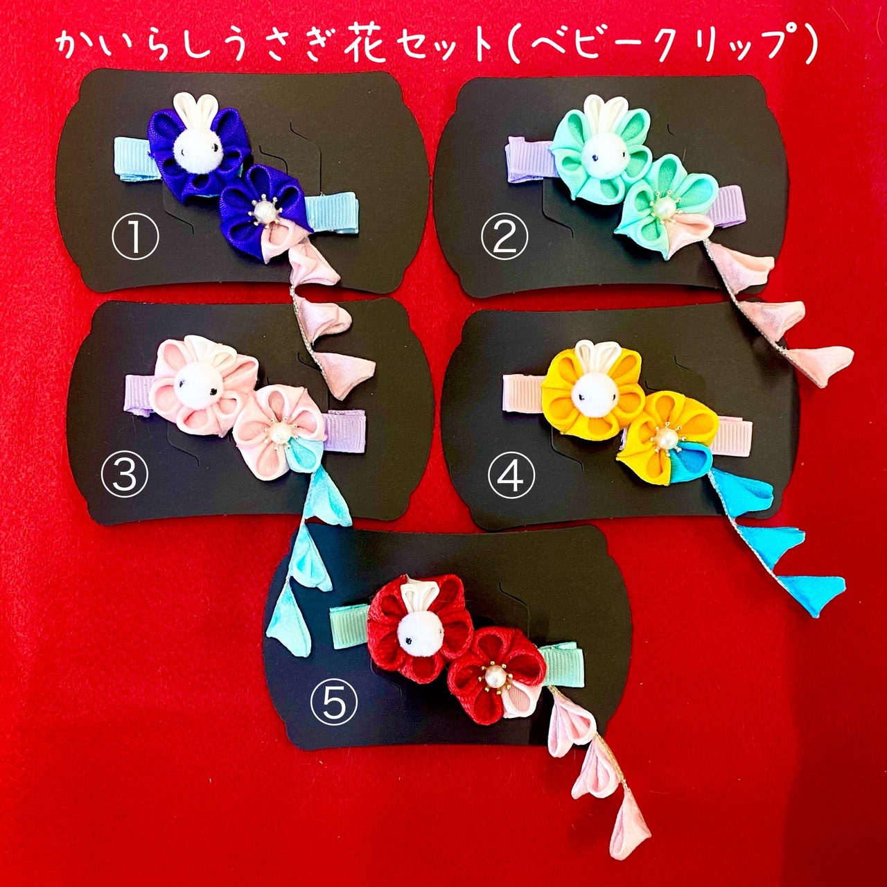 ・かいらしうさぎ花セット(ベビークリップ)
